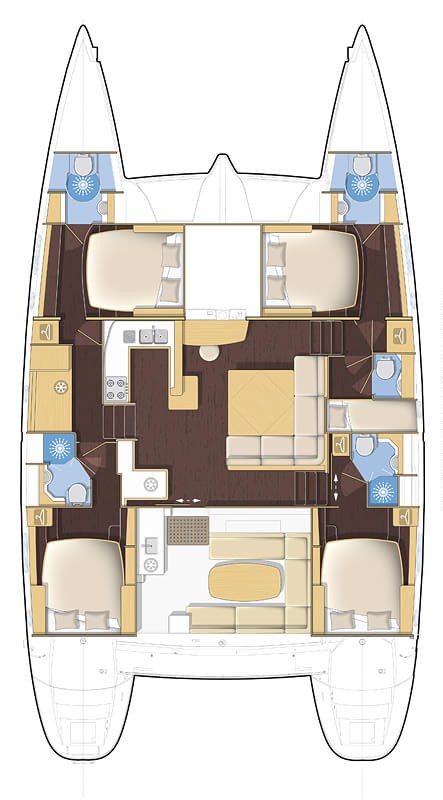 Inside, the Lagoon 500 offers a bright, airy saloon with seamless access to the outdoor spaces. Everything about the design encourages movement, conversation, and that easy “island day” feeling.